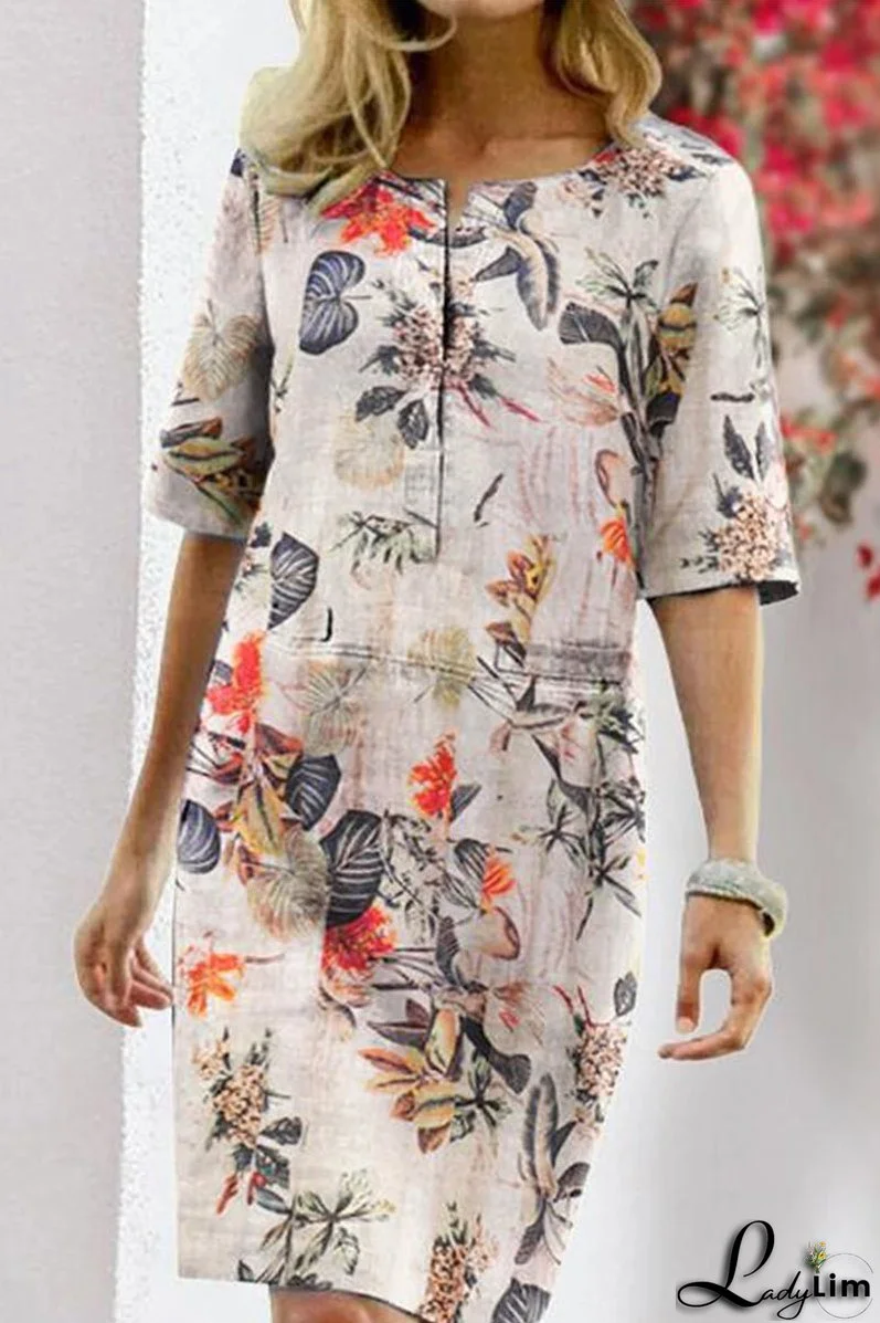 - Tag: Regular, Floral, Patchwork, O Neck, Loose, Full Print, Knee Length, Half Sleeve, Elegant, Cotton and Linen, newitems, College, Printed Dress